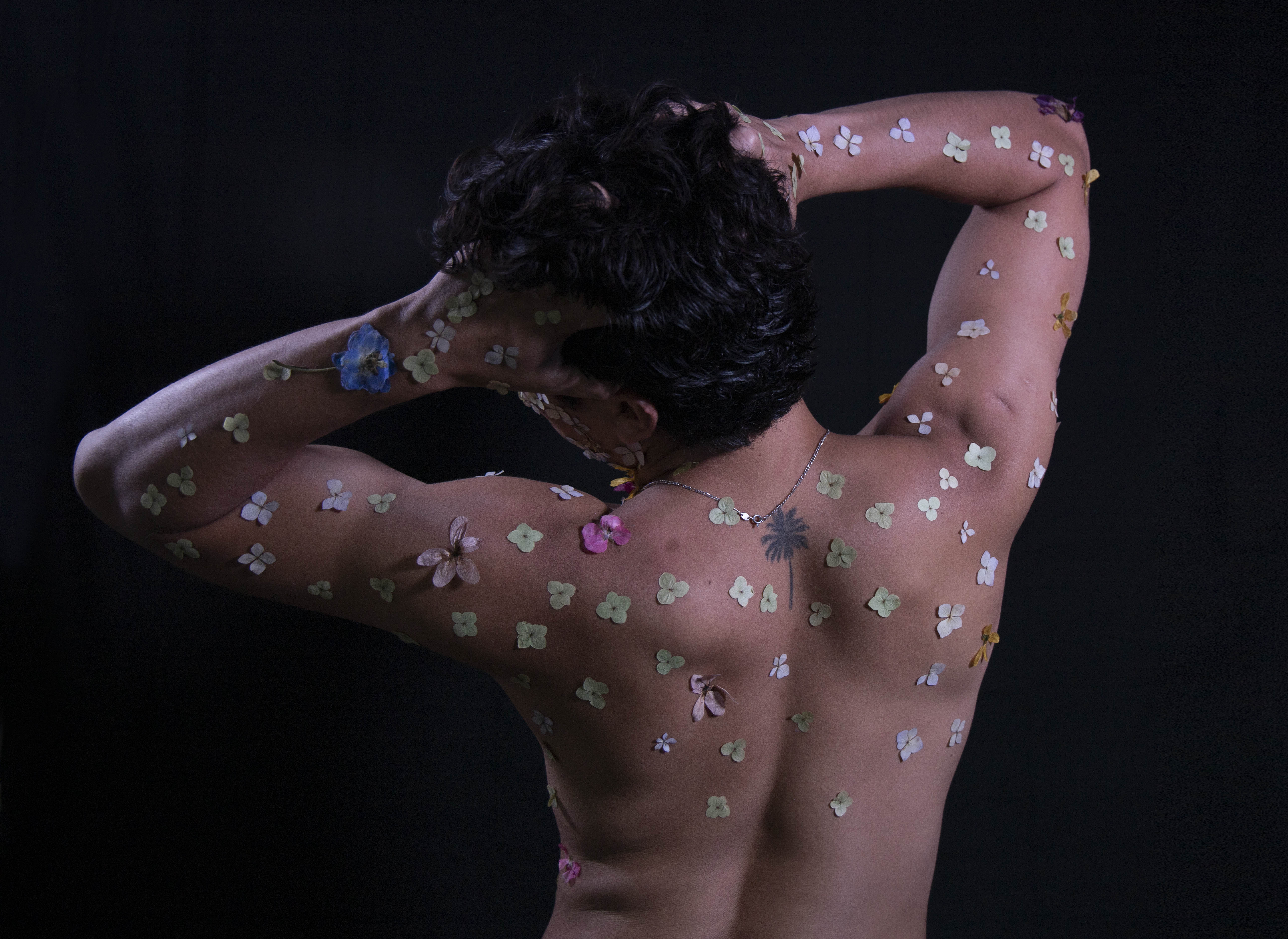 I believe flowers go perfectly on a nude body. Both are perfect, both are sensitive and soft, both have different textures and colors. For me, it’s like a natural tattoo on the body.