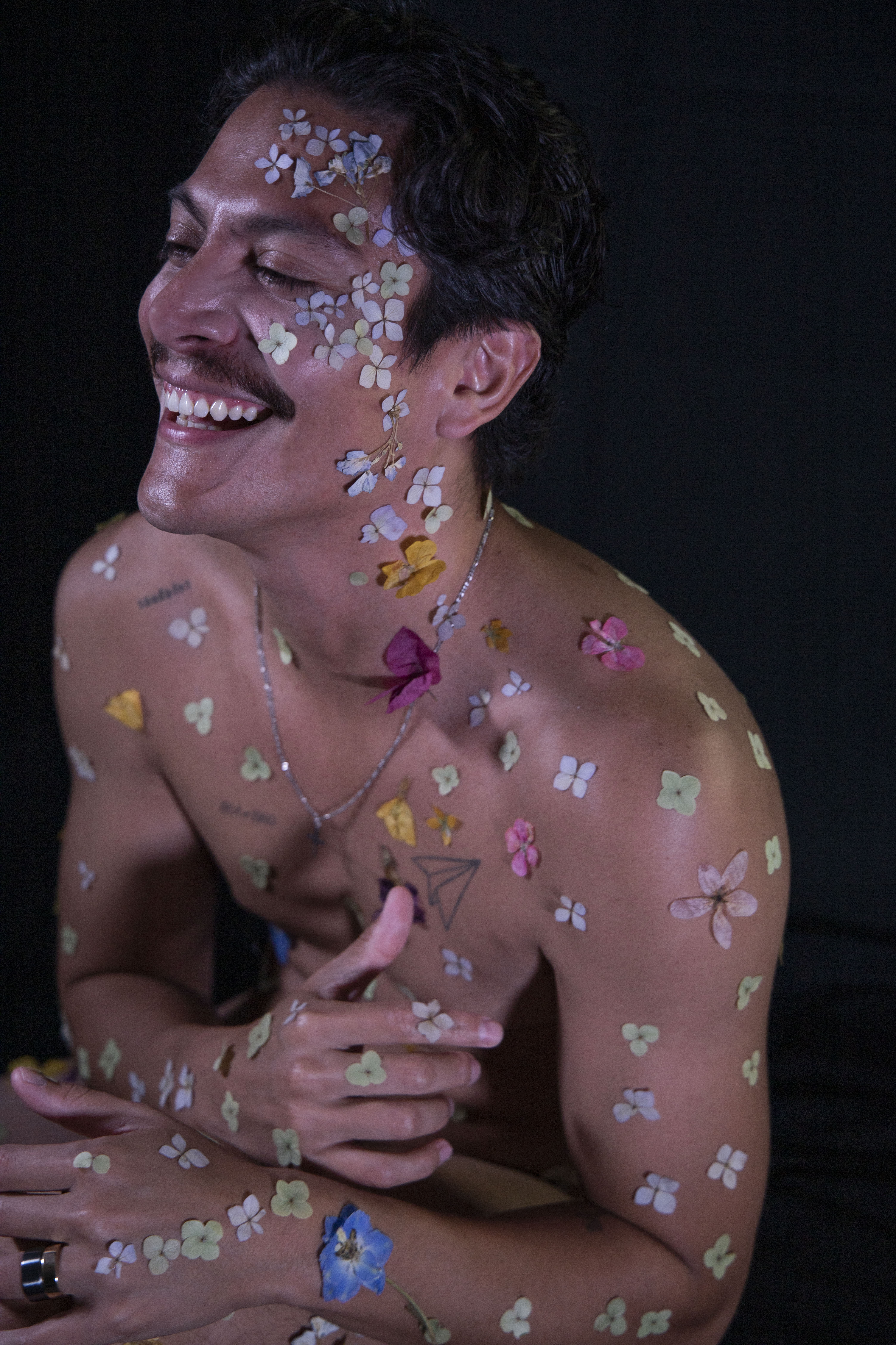 Creo que las flores combinan perfectamente con un cuerpo desnudo: ambos son perfectos, sensibles y suaves, ambos tienen distintas texturas y colores. Para mí, es como un tatuaje natural sobre el cuerpo.